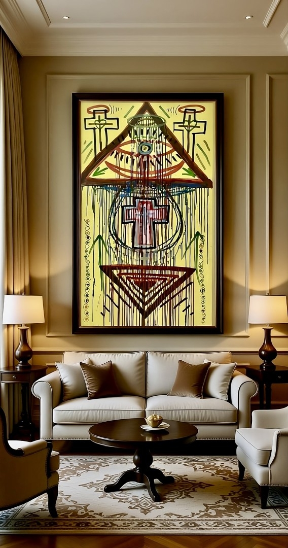 Koceila Chougar’s oeuvre blends African Abstract Expressionism, Mystical Symbolism, and Religious Iconography, appealing to collectors and curators seeking both intellectual depth and visual innovation. His visibility at elite events and collaborations with international figures highlight a strategic cultivation of cultural and financial capital.