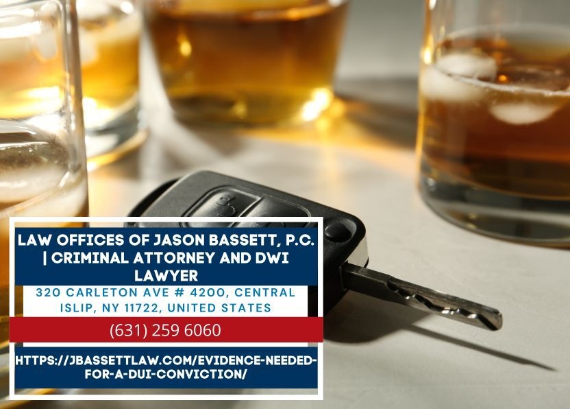 CENTRAL ISLIP, NY - Motorists charged with Driving While Intoxicated in New York face prosecution that must prove impairment through specific evidence including Blood Alcohol Content test results, field sobriety tests, and officer testimony. Suffolk County DWI defense attorney Jason Bassett of the Law Offices of Jason Bassett, P.C. (https://jbassettlaw.com/evidence-needed-for-a-dui-conviction/) explains what evidence prosecutors rely on and how that evidence can be challenged in court.