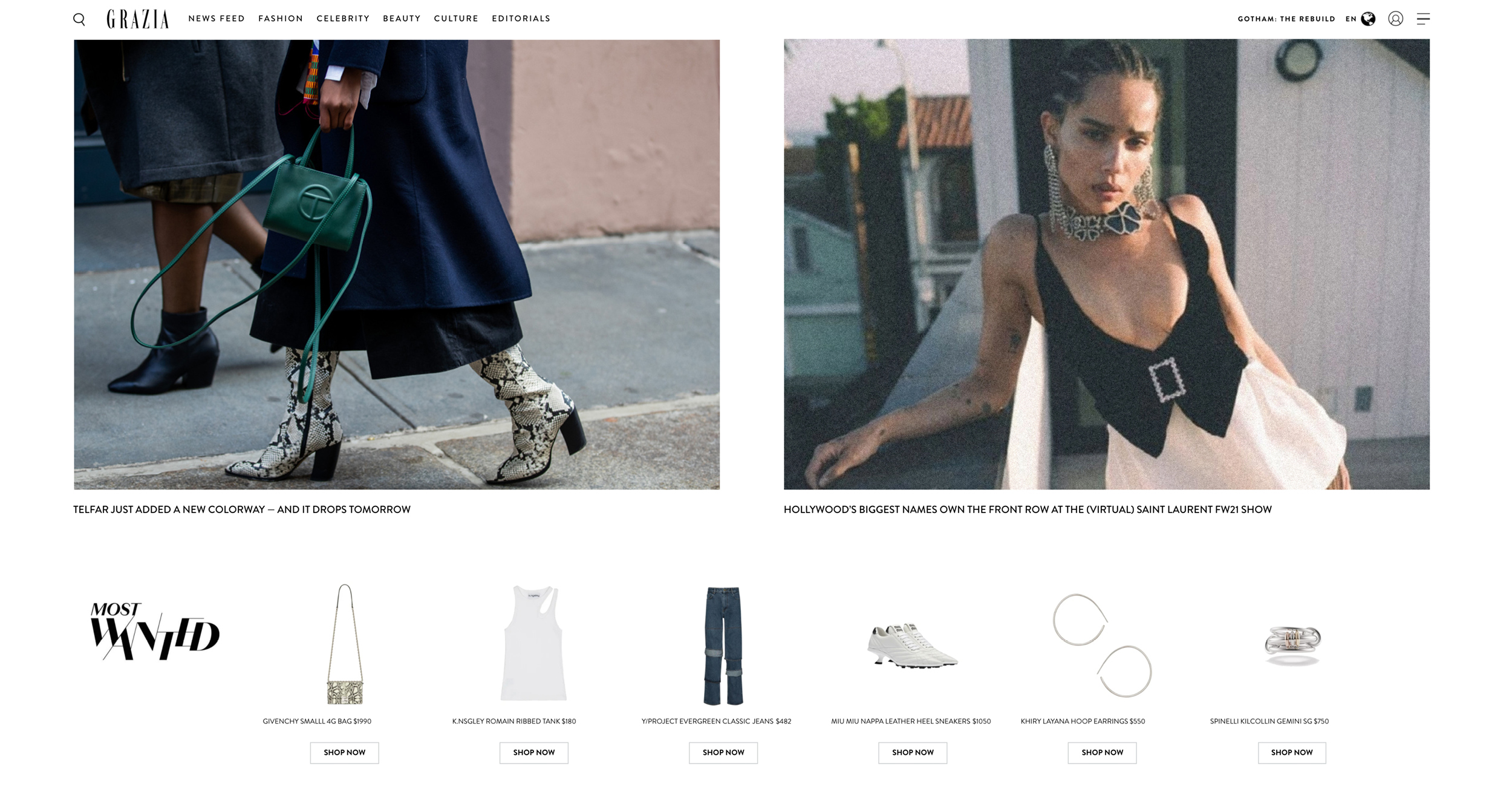 Grazia is Italy's fashion bible, published by the Mondadori Group. For 80 years Grazia has remained in step with changing tastes season after season, style after style. At the top end of quality and design, Grazia is the most accomplished ambassador of the "Made in Italy" brand and is a preferred advertising vehicle for designer, fashion, and beauty companies. Thanks to its experience, excellence and brand value, Grazia is the first Italian weekly magazine to extend its successful formula abroad with 21 editions worldwide in 23 countries, creating the most dynamic magazine network on the market and the global platform graziamagazine.com.