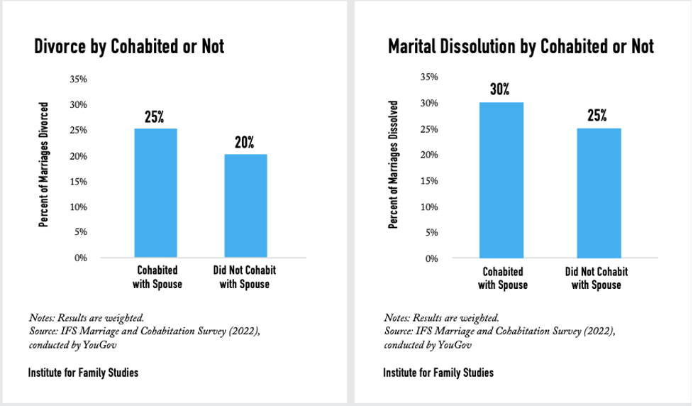 The new IFS report confirms previous U.S. research that those who cohabit before marriage are more likely to divorce.