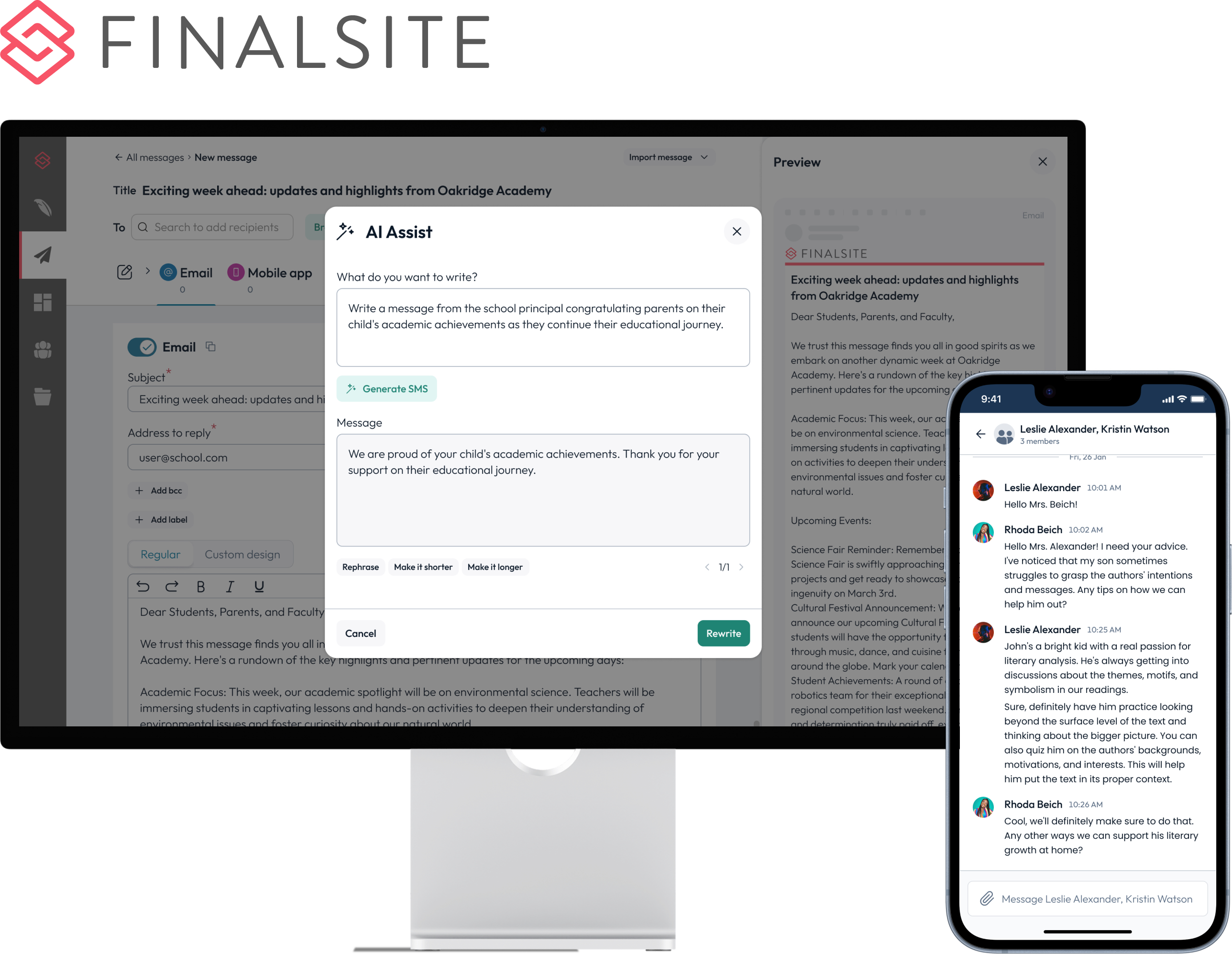 Finalsite's expansion of communications products and features reflects the company's commitment to driving exceptional outcomes for K-12 schools globally. To learn more, visit www.finalsite.com/communications.
