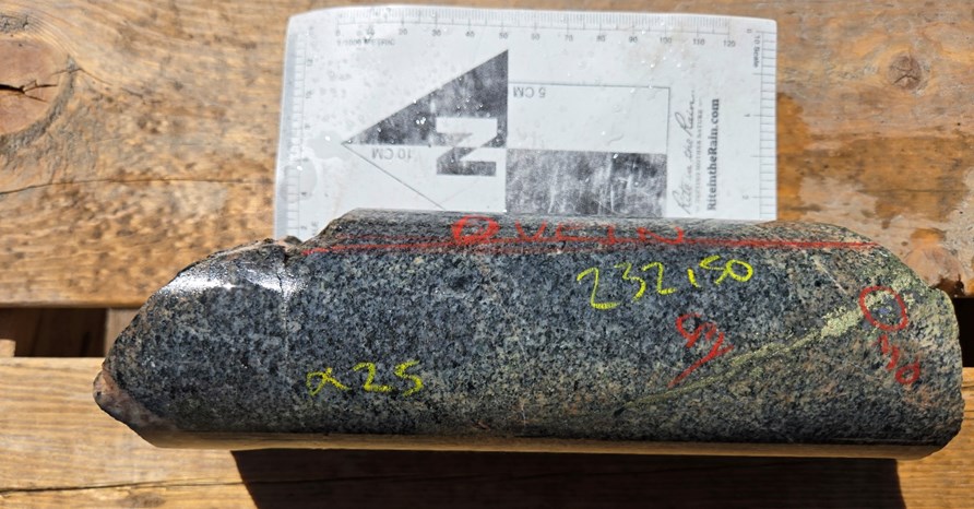 Drill core observations from 2025 support the presence of a porphyry system at Draken (Figure 2). Holes DR-25-001 and DR-25-002 show downhole zonation from pyrite-chalcopyrite to chalcopyrite to chalcopyrite-molybdenite. Outcrop observations are consistent with drill hole observations. The weak mineralization of chalcopyrite with minor bornite and rare molybdenite are associated with classic porphyry alteration assemblages of quartz, epidote, potassium feldspar, chlorite, and sericite. Mineralization is associated with quartz veinlets with varying amounts of potassium feldspar, chlorite, and sericite. Mineralization and alteration are hosted in the Guichon Border Phase diorite. Observations demonstrate the presence of copper and molybdenite in the hydrothermal system and suggest proximity to a porphyry centre. (figures 3 and 4). Nicola's observations and interpretation of Draken being associated with a porphyry system are consistent with the finding of the UBC MDRU study (see below).