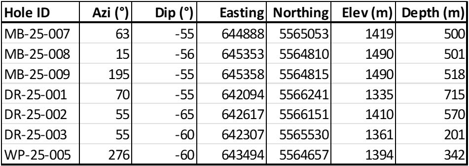 The third target, at WP/West Craigmont (hole (WP-25-007) did not encounter anything visually more indicative of a porphyry system than Draken, leaving Draken as the most promising target on the west side of the property.