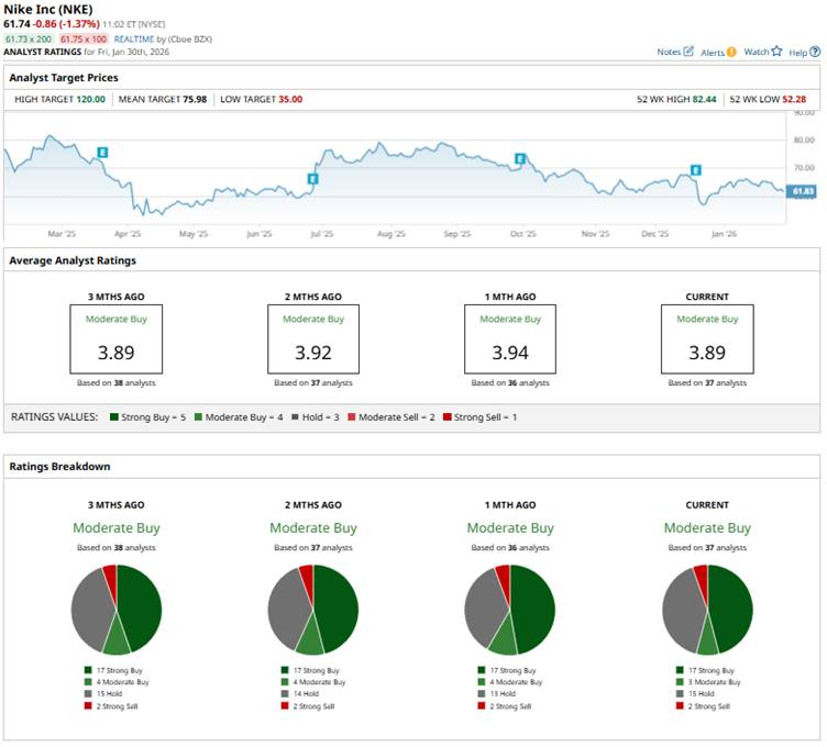 On Jan. 6, RBC Capital analyst Piral Dadhania reiterated an “Outperform” rating on Nike but cut the price target to $78 from $85.