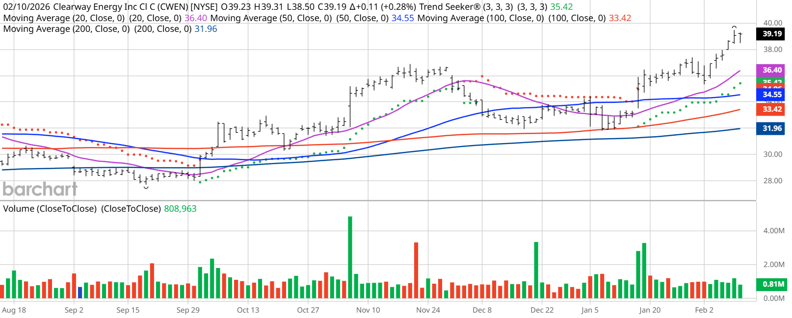 Barchart Technical Indicators for Clearway Energy