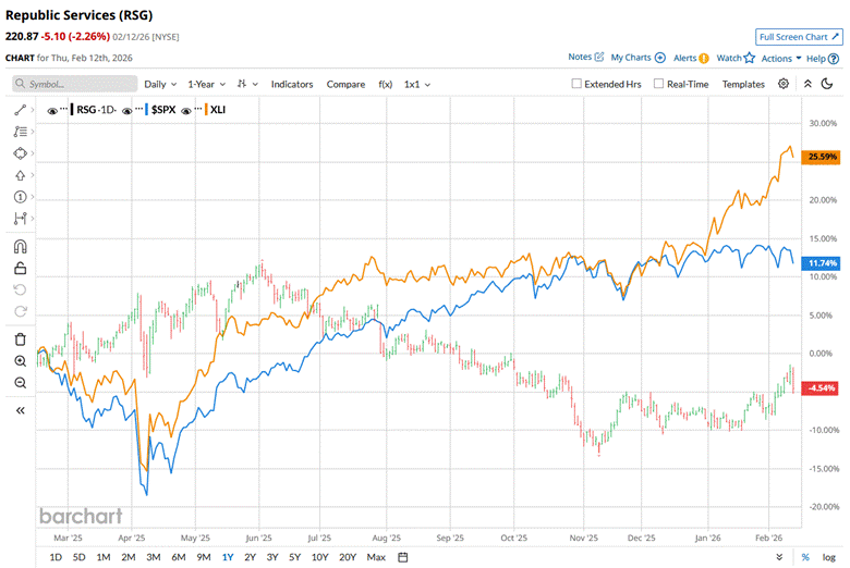 Narrowing the focus, RSG stock has also underperformed the State Street Industrial Select Sector SPDR ETF (XLI), which has increased 25.4% over the past 52 weeks.