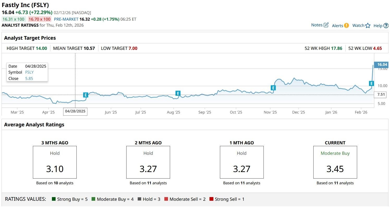 Meanwhile, the consensus rating on San Francisco-headquartered Fastly remains at a “Moderate Buy,” according to Barchart.