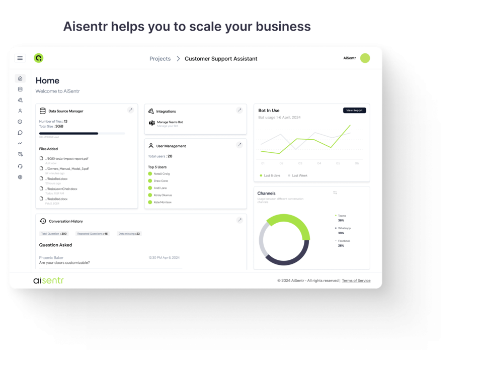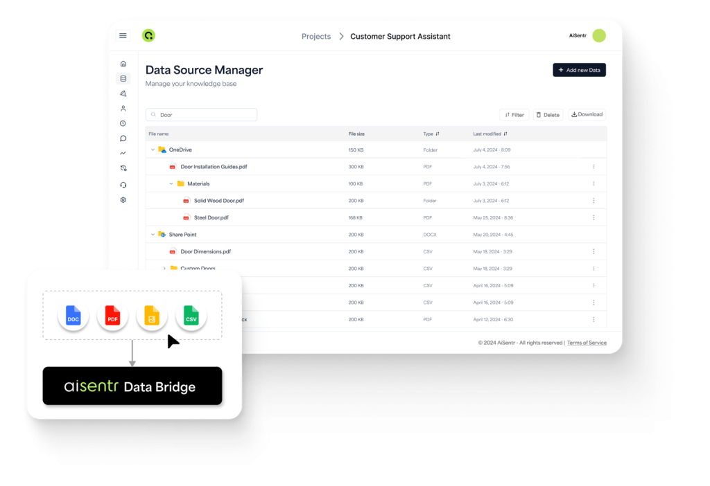 AISentr is thrilled to introduce its end-to-end platform for small, less technical businesses. With this chatbot for data, it is now possible to transform any data source into a chatable application in minutes.