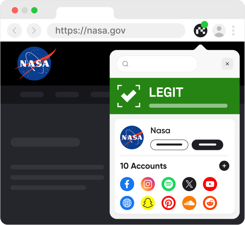 • Real-Time Verification: Instantly confirms the authenticity of websites and social media profiles.