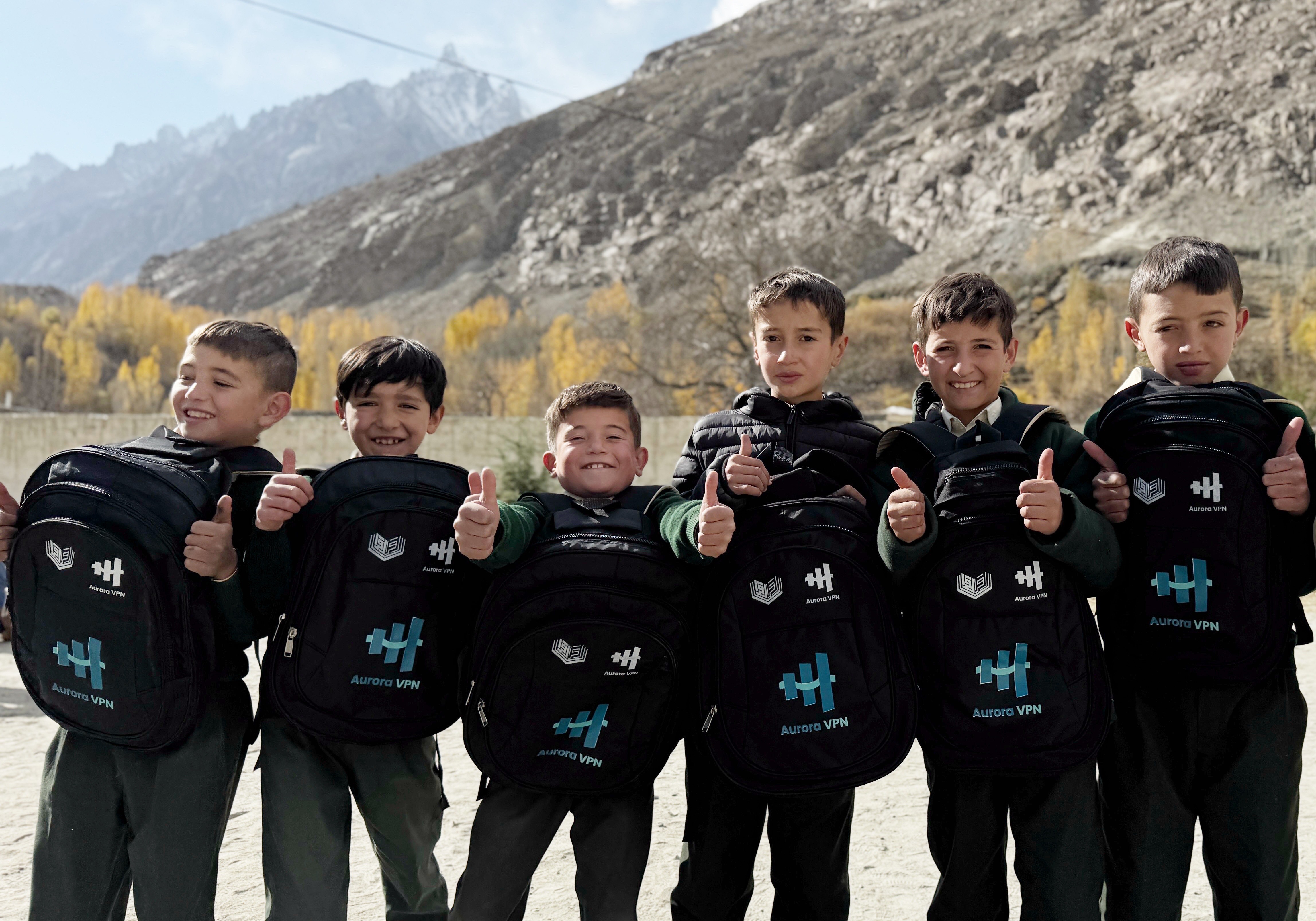 Ghulkin, Hunza, Pakistan— Aurora VPN has donated school bags to Diamond Jubilee Middle School, part of the Community Based School System in Ghulkin, Gojal, Hunza. The donation supports the school’s mission to expand access to education for children in this remote mountainous region.