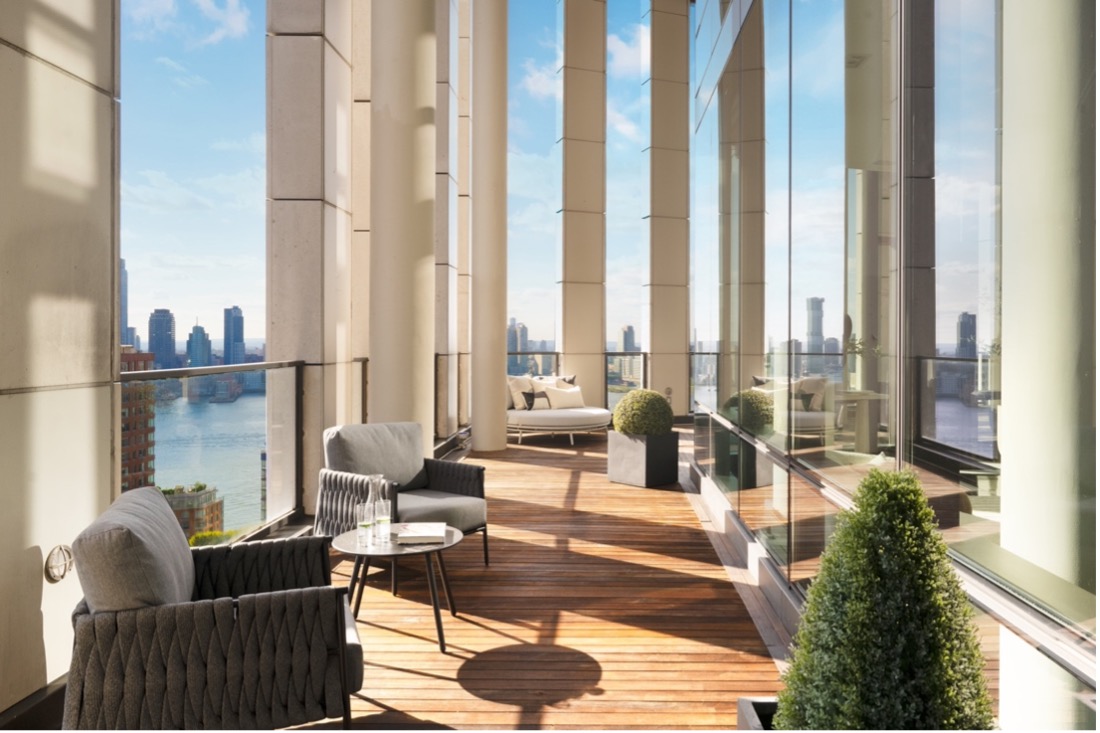 - The pièce de résistance is the 2,586 square feet of wrapped loggia terraces, offering breathtaking, panoramic views of the New York City skyline.