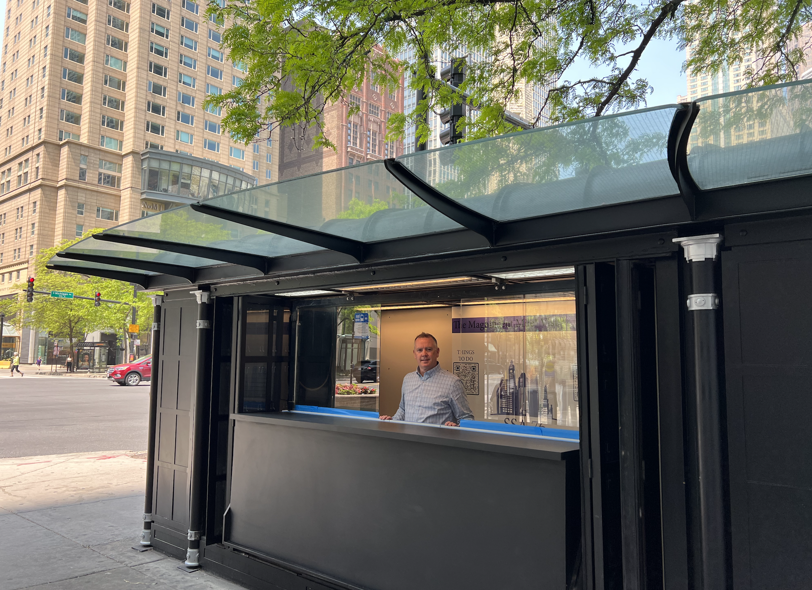 Chicagoans may recall that the Visitor Center was formerly a newsstand that inhabited the corner for several decades. They will be delighted to see how the structure has been refurbished and converted into a welcome center on Michigan Avenue. JCDecaux, the owner of the former newsstand turned Visitor Center, graciously assigned the lease to The Magnificent Mile Association with funding from The Association’s Special Service Area 76.
