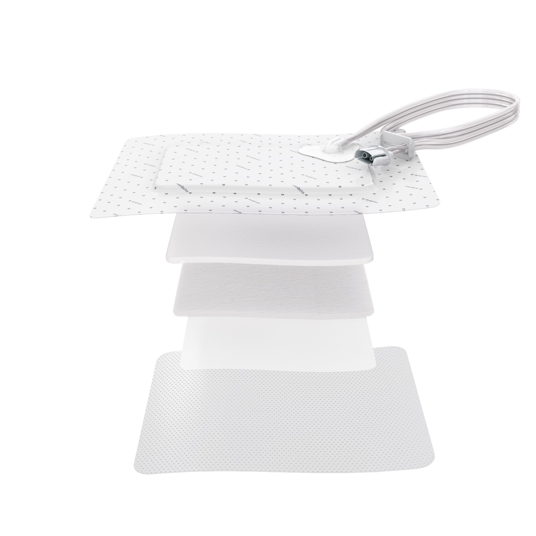 The Medela system also includes Dynamic Exudate Removal technology featuring double-lumen tubing to prevent blockages, efficiently remove exudate, and dynamically adapt to fluid fluctuations to pull fluid away from the wound and into the canister while allowing the body to continue its natural wound healing and tissue regeneration process.