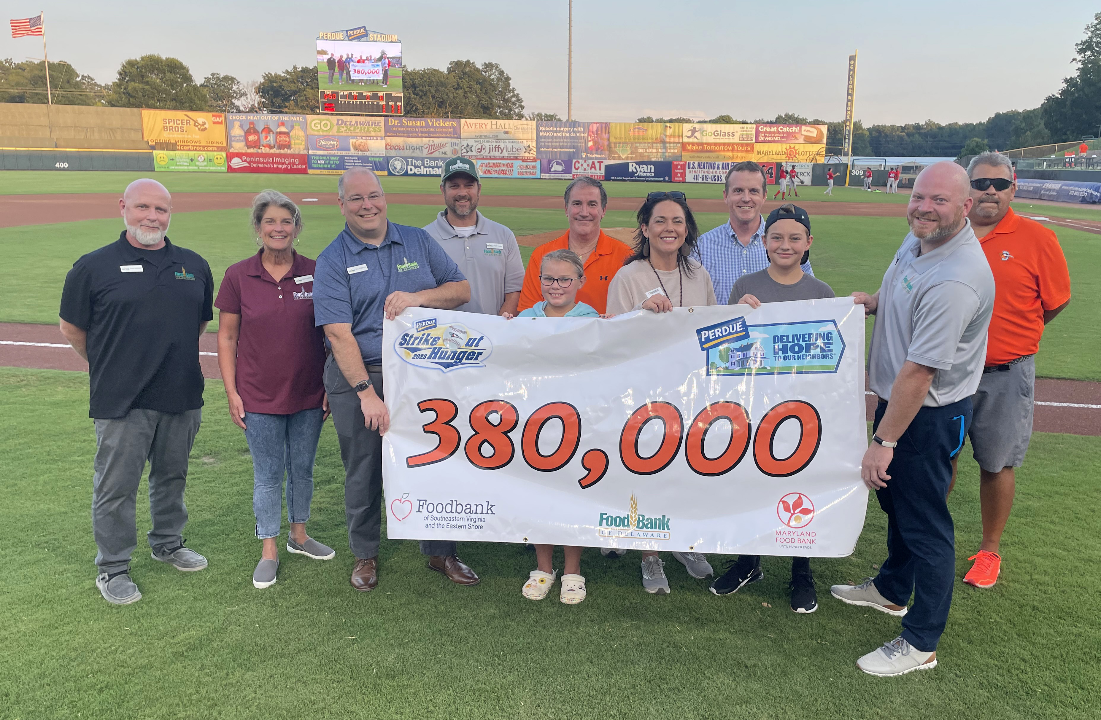Salisbury, MD, Sept. 13, 2023 (GLOBE NEWSWIRE) -- As part of Perdue Farms’ “Delivering Hope to Our Neighbors®” initiative focused on improving the quality of life in our communities through hunger relief, the company teamed with the Delmarva Shorebirds Class A minor league baseball team and three Delmarva Peninsula food banks to generate 380,000 meals during the season-long 2023 Perdue Strike Out Hunger Challenge on Delmarva.