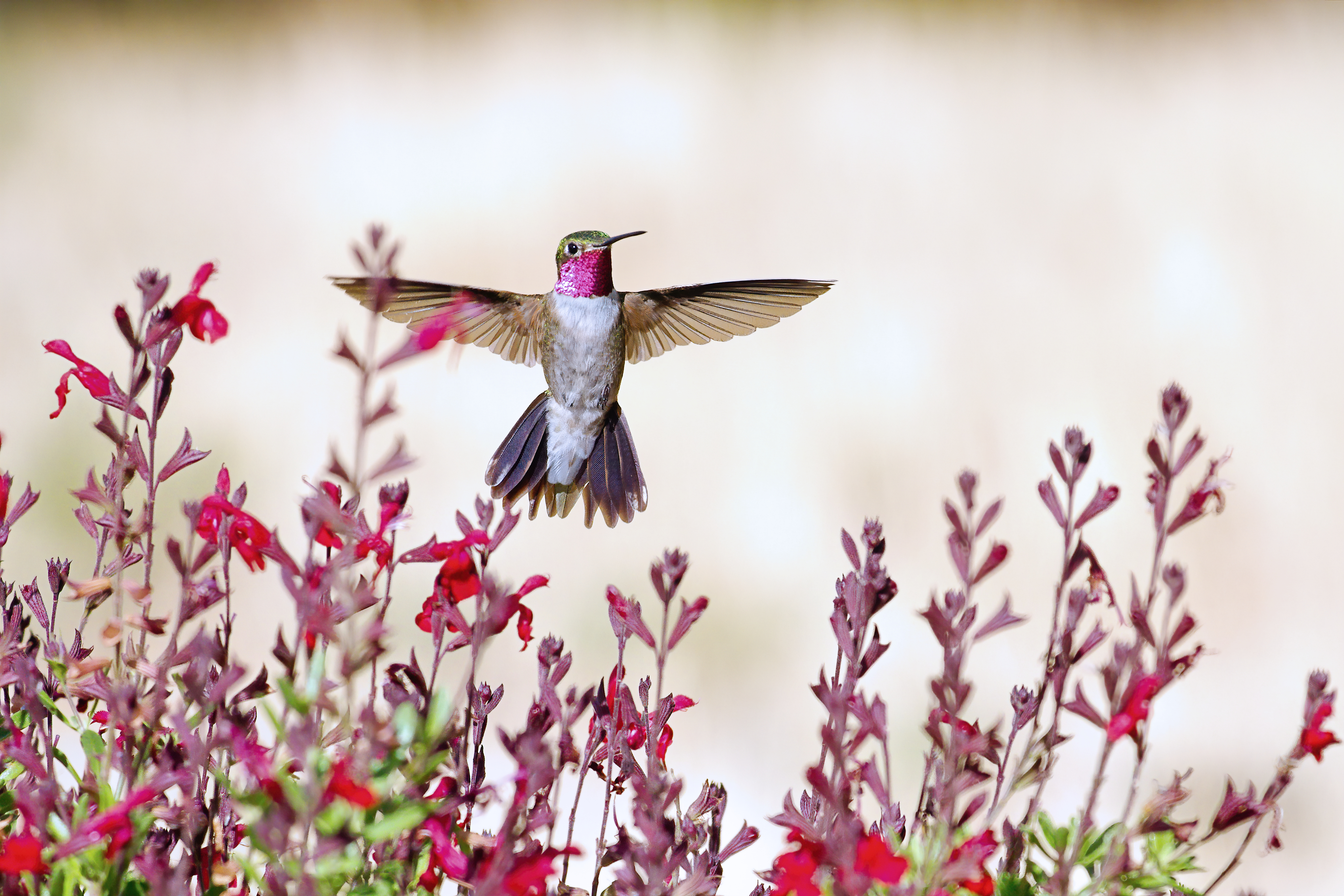 Planting a variety of plants with different blooming times will help to keep hummingbirds happy all season. Top recommendations for hummingbird favorites with abundant natural nectar include Agastache (also called Hyssop or Hummingbird Mint,) Penstemon (also called Beardtongue), Salvia (also called Sage), Zauschneria (also called Hummingbird Trumpet), and Lonicera (also called Honeysuckle Vine).