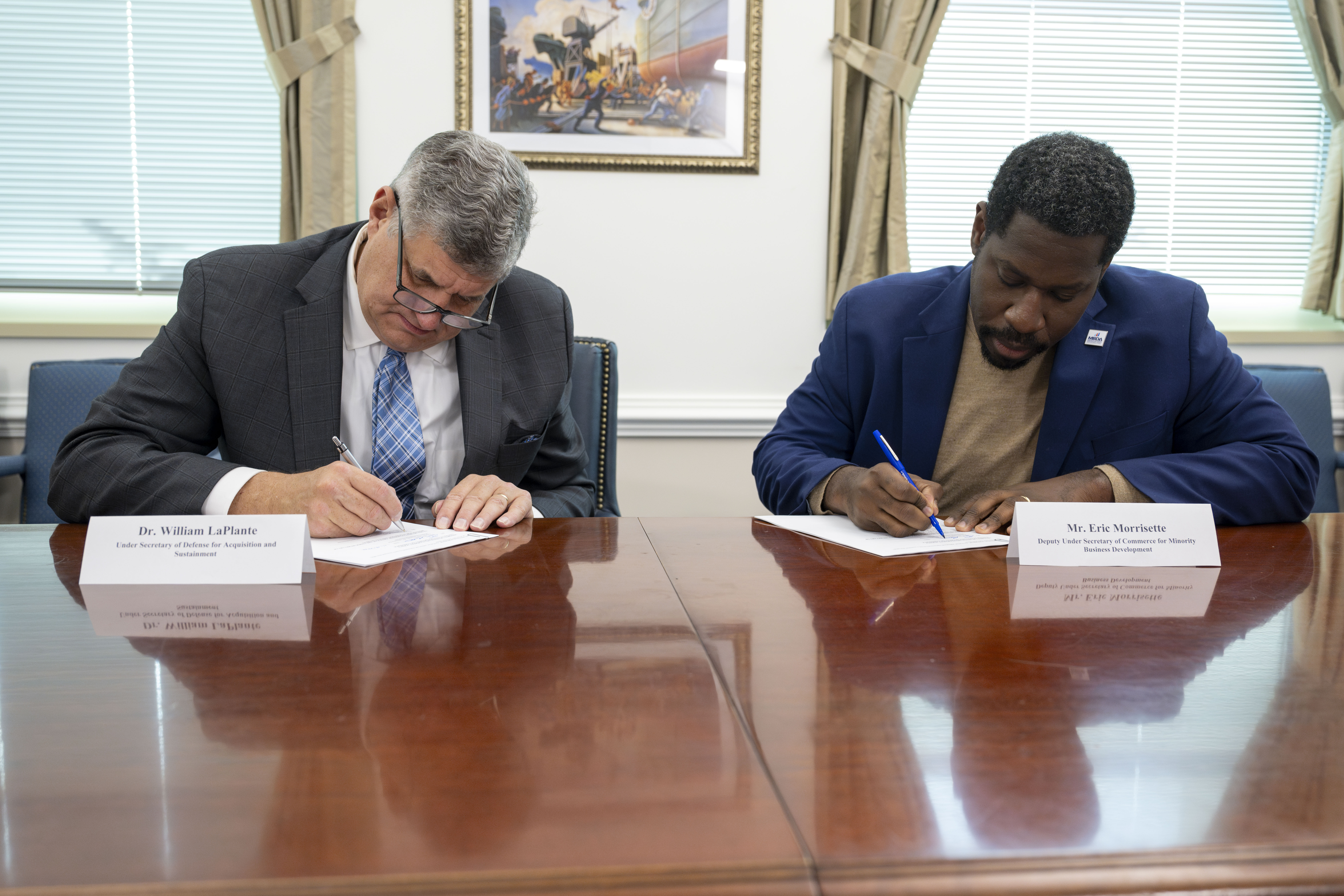 WASHINGTON, D.C., Nov. 20, 2024 (GLOBE NEWSWIRE) -- Today, the U.S. Department of Commerce’s Minority Business Development Agency (MBDA) and the Department of Defense (DoD) Office of the Under Secretary of Defense for Acquisition and Sustainment met to commemorate the signing of their joint Memorandum of Understanding (MOU) at the Pentagon in Arlington, Virginia, with the aim of ensuring minority business enterprises (MBE) have an equitable opportunity to participate in the defense sector.