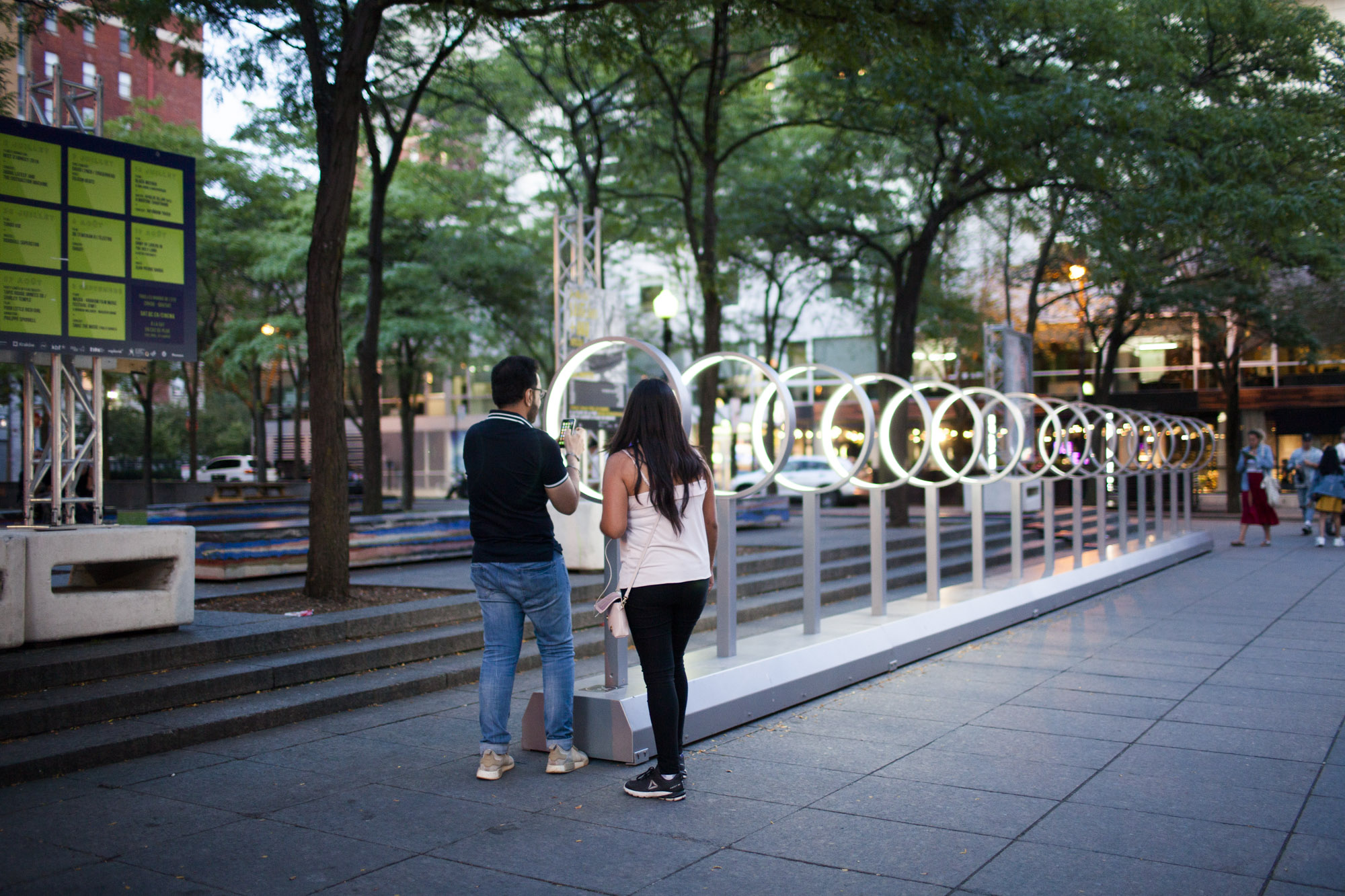 From the 7th of April through the 6th of May, the plaza at 875 North Michigan Avenue will come alive with an electrifying display of illumination and acoustics. Guests are encouraged to immerse themselves in this dynamic environment, where their voices give life to a visual concert of oscillating waves, tracing the intriguing paths of auditory communication. As participants contribute their words, they'll witness their spoken messages journey across the expanse, sparking a captivating exchange of sound and light. Spectrum by Mirari is a co-production of Quays Culture and Quartier des spectacles Partnership and is distributed by QDSinternational.