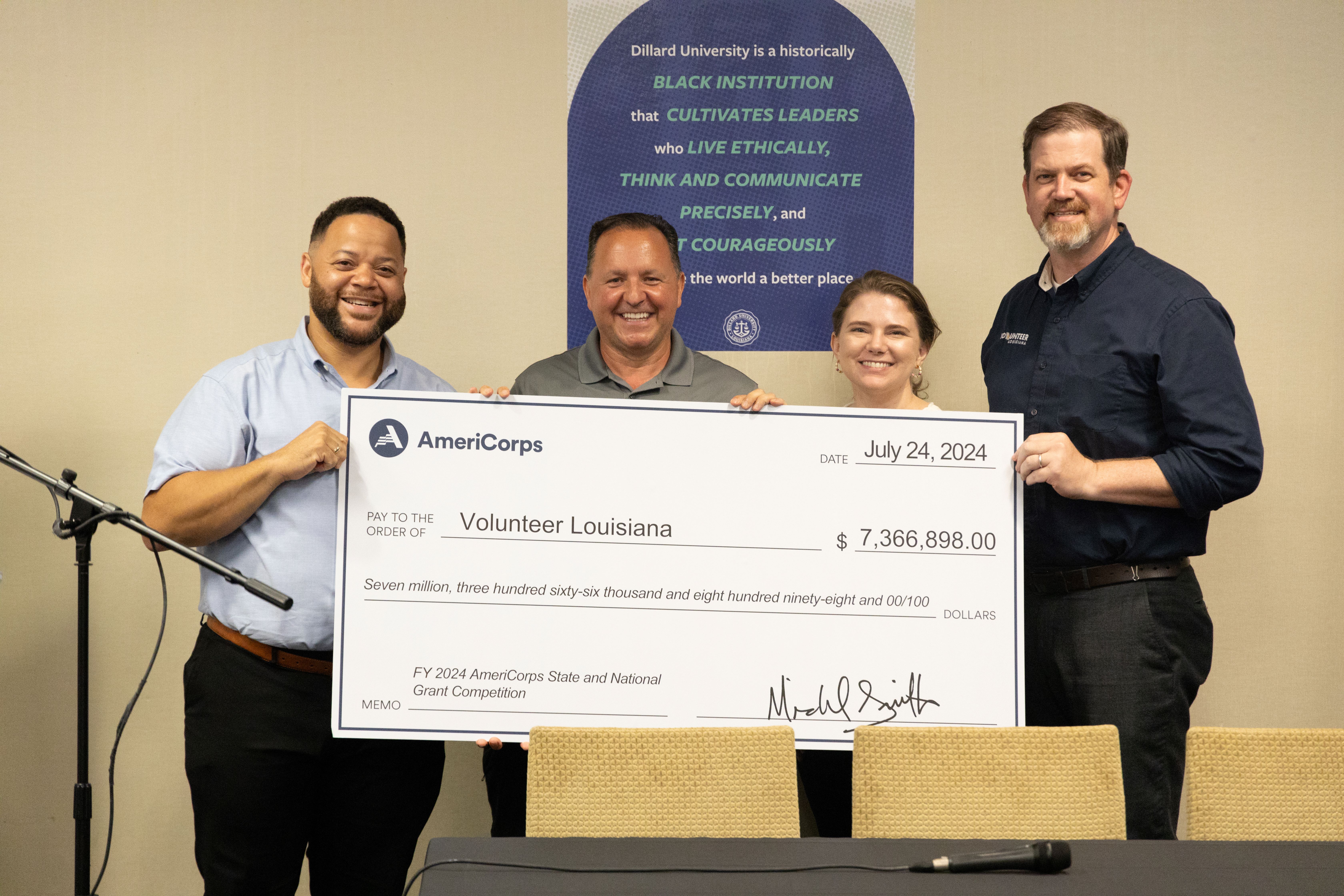 New Orleans, La, July 25, 2024 (GLOBE NEWSWIRE) -- AmeriCorps, the federal agency for national service and volunteerism, announced more than $10 million in federal funding to Volunteer Louisiana, the state’s service commission, during a delegation trip with AmeriCorps board members and CEO Michael D. Smith. The grant award will support the service of approximately 780 AmeriCorps members who will support economic development, education and conservation efforts across the state.