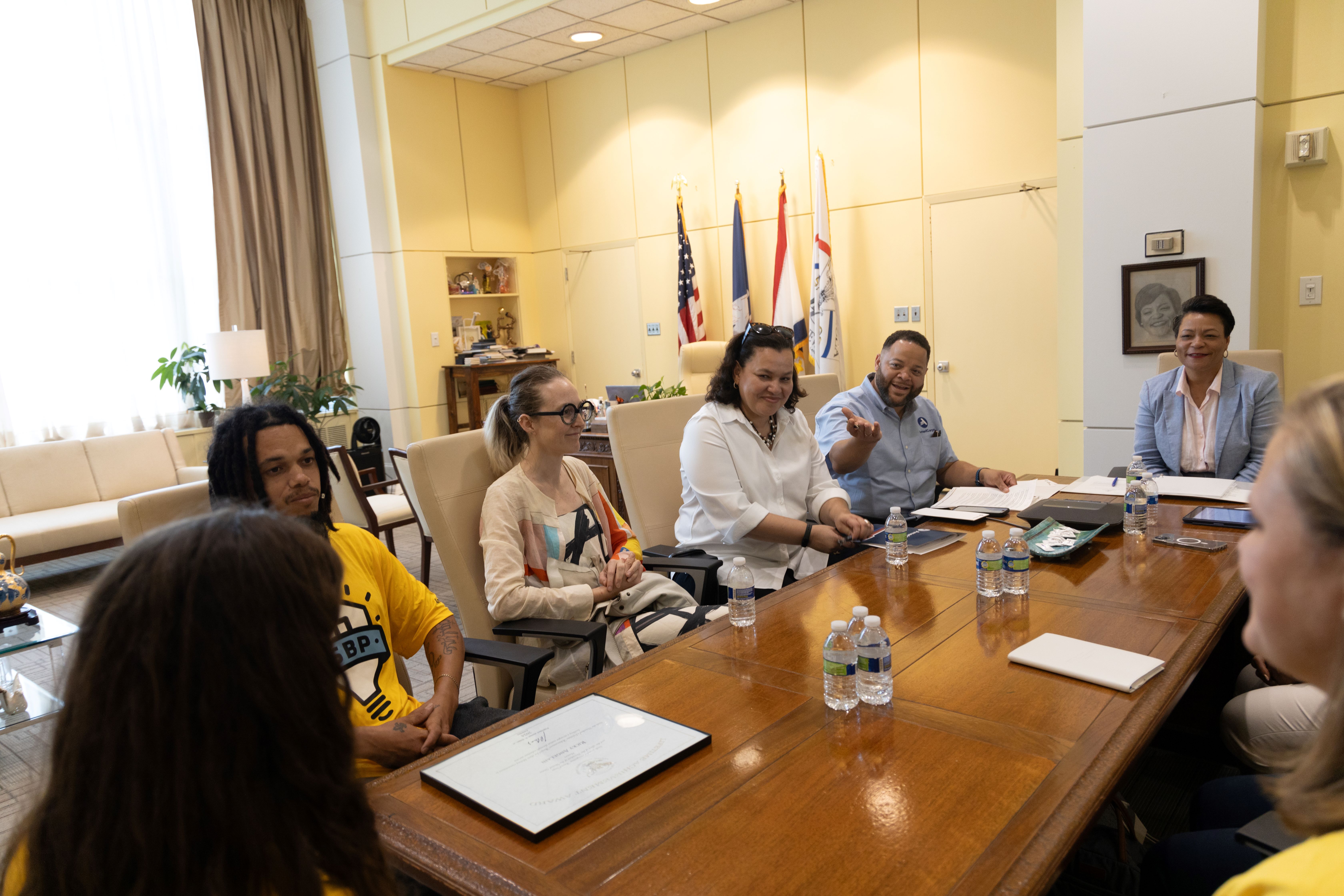 During a visit with New Orleans Mayor LaToya Cantrell, she and AmeriCorps CEO Michael D. Smith presented two AmeriCorps members with President’s Volunteer Service Awards: Pamela Bourgeois, a client services coordinator with SBP New Orleans who served 850 hours in New Orleans, and Ricky Angelain, a project lead with SBP New Orleans who served more than 680 hours.