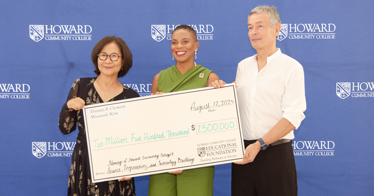 COLUMBIA, MARYLAND, Aug. 13, 2024 (GLOBE NEWSWIRE) -- Howard Community College (HCC) President Daria J. Willis joined philanthropists Thomas P. Clement and Wonsook Kim to receive a $2.5 million donation from the family. The gift is the single-largest contribution in the college’s history.