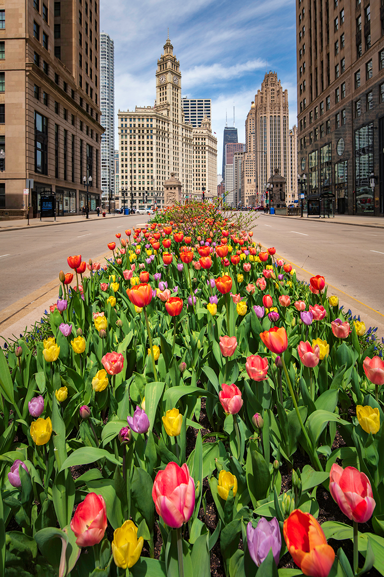 You'll find them blooming proudly at 625 North Michigan Avenue, Tribune Tower residence and outside the Starbucks Reserve Roastery, where they're joined by four vibrant tulip sculptures that add even more color and charm to one of the world's most photographed boulevards.